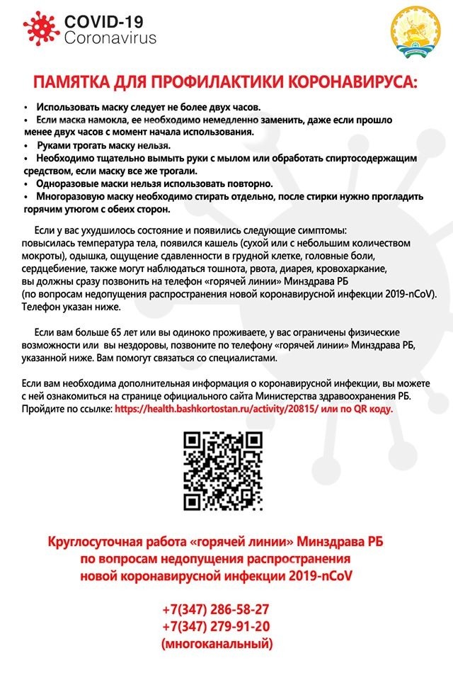 Распоряжение Главы Республики Башкортостан №РГ-91 "О мерах по снижению рисков завоза и распространению новой коронавирусной инфекции на территории Республики Башкортостан