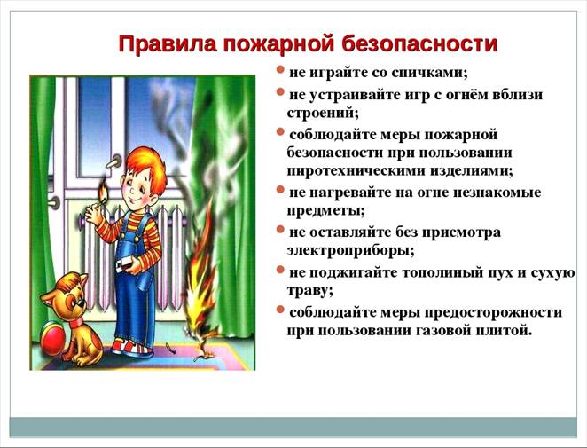 Ни в коем случае не оставляйте детей одних дома даже на заветные «5 минут» и тем более в запертых домах, квартирах или комнатах! Спички и зажигалки, легковоспламеняющиеся и горючие жидкости, а также лекарства и бытовую химию храните в недоступных для детей местах. Не разрешайте своему ребенку самостоятельно пользоваться газовыми и электрическими приборами, растапливать печи.